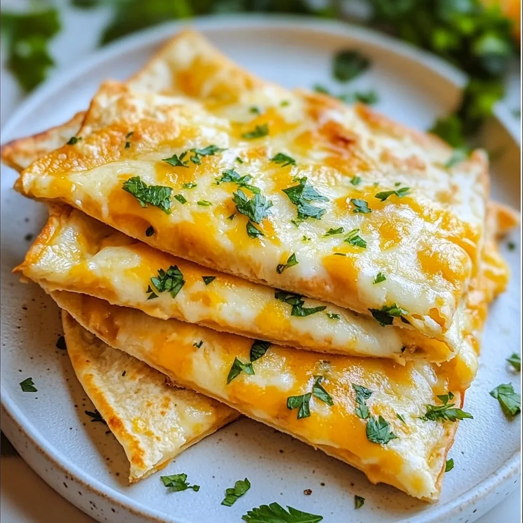 A delicious and easy-to-make cheesy garlic bread using tortillas, perfect for a quick snack or appetizer.