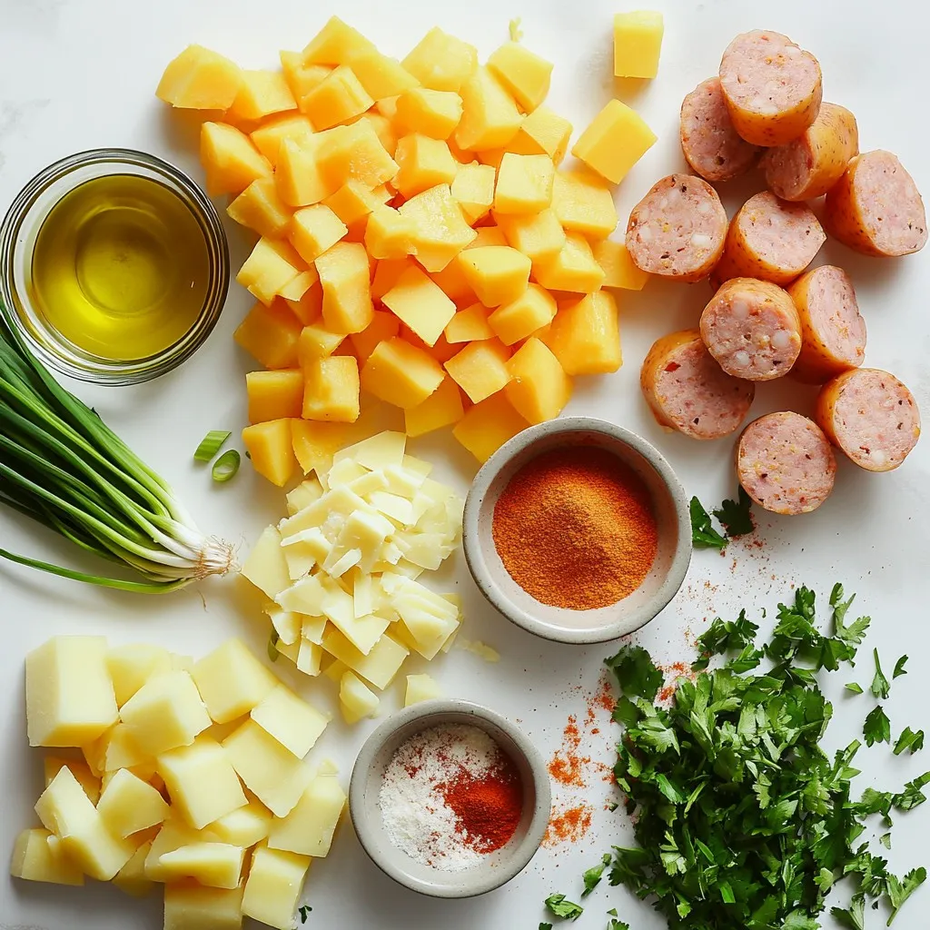 To make Cheesy Ranch Potatoes with Sausage, you need some simple ingredients. Here’s the list: