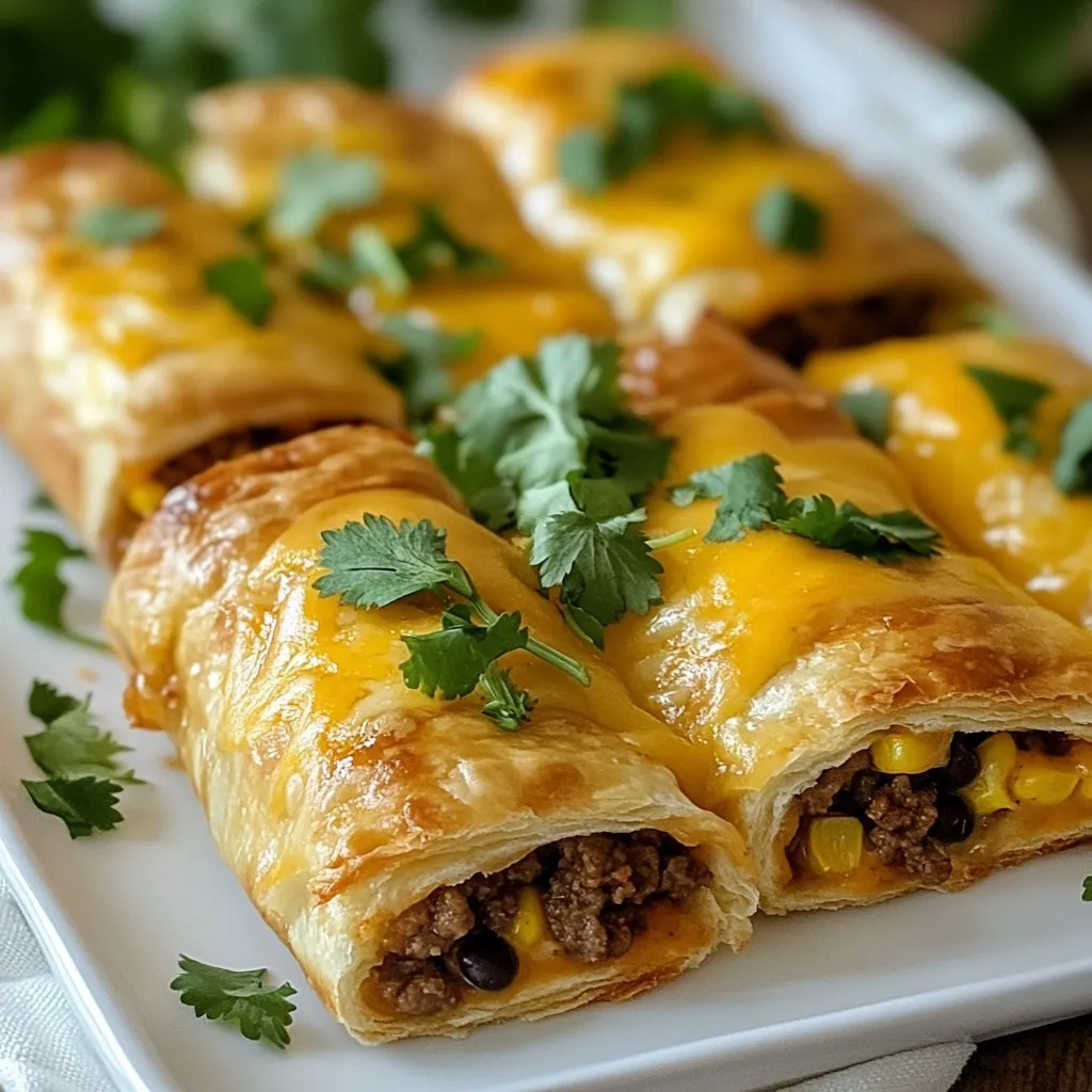 Delicious taco-inspired sticks filled with seasoned beef, cheese, and beans, perfect for snacking.