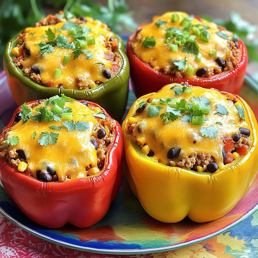 Serve the stuffed peppers on a colorful platter. Garnish with fresh cilantro and extra cheese. This makes the dish look festive and inviting. Offer salsa or guacamole on the side for added flavor. You can also pair with a fresh salad or tortilla chips. These sides add crunch and balance to the meal. Enjoy your delicious creation with family and friends!