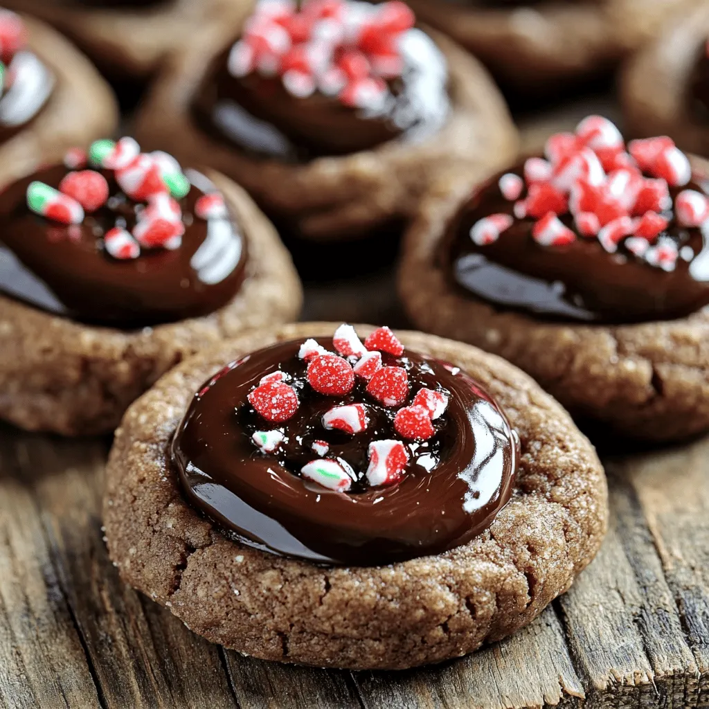 To make Chocolate Peppermint Thumbprint Cookies, you need a few key ingredients. Each one plays a role in crafting these festive treats. Here’s what you will need: - 1 cup unsalted butter, softened - 1 cup granulated sugar - 1 teaspoon vanilla extract - 1 teaspoon peppermint extract - 2 cups all-purpose flour - 1/2 cup unsweetened cocoa powder - 1/2 teaspoon baking powder - 1/4 teaspoon salt - 1/2 cup chocolate chips (for filling) - Crushed peppermint candies (for garnish) Unsalted butter is essential for a rich flavor. Granulated sugar gives the cookies their sweetness. Vanilla and peppermint extracts add that lovely aroma and taste. All-purpose flour and cocoa powder create the cookie base. Baking powder helps them rise, while salt balances the sweetness. The chocolate chips melt in the center, making each bite delightful. Finally, crushed peppermint candies add a festive touch on top. When using these ingredients, ensure you measure accurately. This keeps your cookies soft and chewy. Each ingredient works together, creating a cookie that is both tasty and beautiful. Enjoy gathering these ingredients; they are the first step to making your cookies a success! - Preheat your oven to 350°F (175°C). Line a baking sheet with parchment paper. - In a large bowl, cream 1 cup of softened unsalted butter and 1 cup of granulated sugar. Mix until light and fluffy. - Add 1 teaspoon of vanilla extract and 1 teaspoon of peppermint extract to the mixture. Beat until well combined. - In a separate bowl, whisk together 2 cups of all-purpose flour, 1/2 cup of unsweetened cocoa powder, 1/2 teaspoon of baking powder, and 1/4 teaspoon of salt. - Gradually mix the dry ingredients into the wet mixture. Stir until a soft dough forms. - Chill the dough in the refrigerator for about 30 minutes. This makes it easier to handle. - Once chilled, scoop out tablespoon-sized portions of dough. Roll them into balls and place them on the prepared baking sheet, spacing them about 2 inches apart. - Use your thumb or the back of a spoon to make a small indentation in the center of each cookie. - Bake in the preheated oven for 10-12 minutes. The edges should be firm when done. - While the cookies are still warm, fill each indentation with a few chocolate chips. They will melt and create a delicious filling. - Let the cookies cool on the baking sheet for 5 minutes. Then, transfer them to a wire rack to cool completely. Chilling the dough is key to great cookies. This step firms up the butter and helps the cookies hold their shape. When the dough is cold, it also bakes more evenly. I chill mine for about 30 minutes. This makes it easier to roll into balls. Avoiding overmixing is crucial too. Mix just until the ingredients blend. Overmixing can make cookies tough. You want that soft and tender texture. Using chocolate chips for filling is a great choice. They melt perfectly in the cookie’s center. When warm, they create a gooey and rich filling. This adds a great taste to each bite. You can also try other fillings. Nut butters or caramel can add a twist. For a fun surprise, use different flavors of chocolate chips. Each bite can be a new delight! Dusting with crushed peppermint makes these cookies pop. It adds color and a festive touch. The crunch of the peppermint is a nice contrast to the soft cookie. For serving, think about your plate. A simple white plate lets the cookies shine. Arrange them in a circle or stack them high for a fun effect. This makes your treat look as good as it tastes! {{image_2}} You can change the flavor of these cookies in fun ways. Mint chocolate gives a fresh twist. It brings a cool taste to the rich chocolate base. If you prefer classic chocolate, skip the peppermint extract. You can also explore other extracts for unique flavors. Almond or orange extracts can add a special touch. Experiment and find your favorite flavor! If you need gluten-free cookies, swap all-purpose flour with a gluten-free mix. Make sure it has a good binding agent. For vegan cookies, use plant-based butter and replace the egg with applesauce. You can also use coconut sugar for a healthier option. These swaps keep the cookies tasty while meeting your dietary needs. Toppings can make your cookies even more fun! White chocolate chips add a sweet contrast to the dark chocolate. You can also mix in nuts or dried fruits for added texture. For a festive look, try using different candy garnishes. Crushed candy canes or colorful sprinkles can brighten up your cookies. Get creative and make them your own! To keep your Chocolate Peppermint Thumbprint Cookies fresh, store them at room temperature. Place them in an airtight container. This helps keep them soft and tasty. They last for about a week this way. If you want to keep them longer, try refrigerating them. Wrap the cookies in plastic wrap and put them in the fridge. This can help them stay fresh for up to two weeks. You can also freeze cookie dough for later use. To do this, scoop the dough into balls. Place them on a baking sheet and freeze until solid. Once frozen, transfer the balls to a freezer bag. This keeps them fresh for up to three months. When you want to bake some cookies, take out the dough. Let it thaw in the fridge overnight. Once thawed, bake as you normally would. This method gives you fresh cookies anytime! Can I use salted butter instead? You can use salted butter, but it may change the cookie's taste. The salt in salted butter can overpower the sweet chocolate and peppermint flavors. If you use it, skip adding extra salt in the recipe. How long do the cookies stay fresh? These cookies stay fresh for about one week at room temperature. Store them in an airtight container to keep them soft and tasty. If you want to keep them longer, consider freezing them for up to three months. Can I make the dough ahead of time? Yes, you can make the dough ahead of time. Chill it, then wrap it tightly in plastic wrap. Store it in the fridge for up to three days. You can al