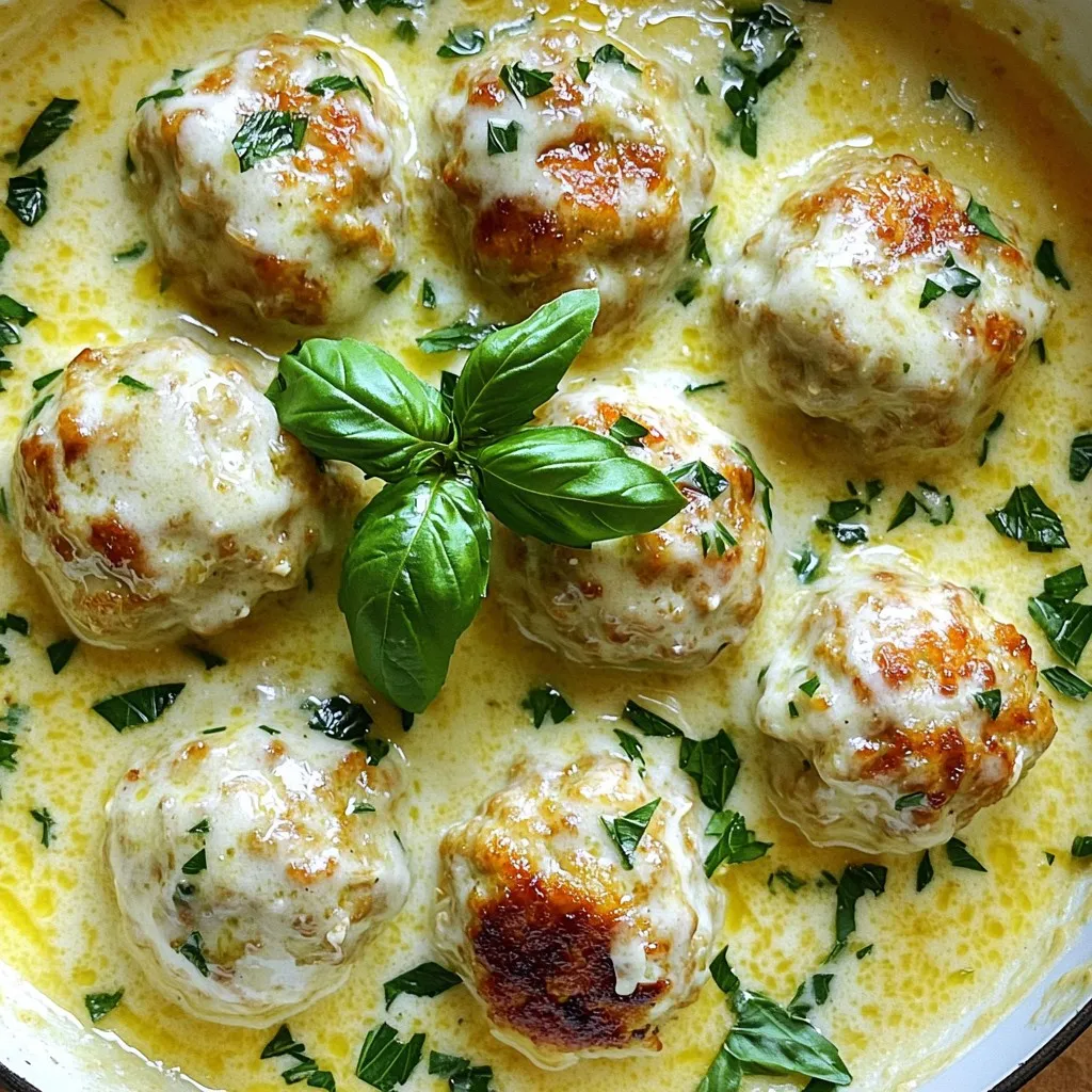 Serve your meatballs over pasta or rice. The sauce coats them well. You can also pair them with garlic bread for a delicious meal. Fresh basil adds a nice touch on top. It brightens the dish and adds aroma. For a side, consider a fresh salad. It balances the creaminess with crunch and freshness.