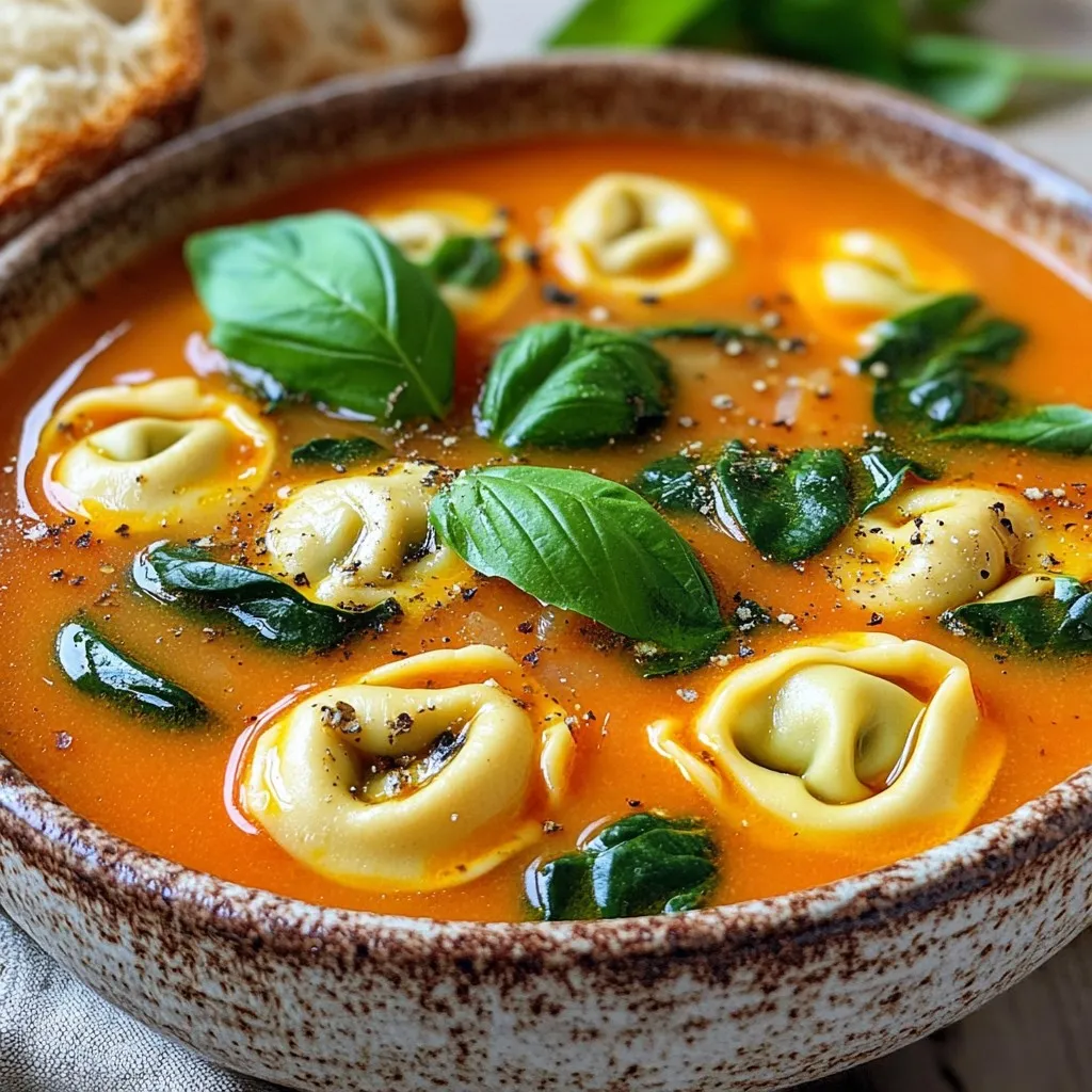 The additional ingredients elevate the soup to a new level. Fresh baby spinach adds color and nutrients. Cheese tortellini brings a satisfying bite. The heavy cream gives the soup its creamy texture and smoothness. Finally, a sprinkle of fresh basil leaves on top not only looks great but also boosts flavor. Together, these ingredients create a comforting meal that’s perfect for any day.