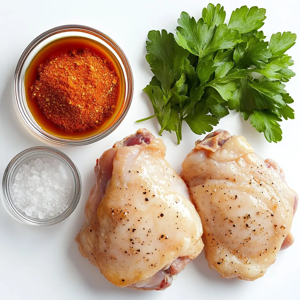 These ingredients create a sweet and savory flavor. The boneless chicken thighs are juicy and cook quickly. Maple syrup adds a sweet touch that pairs well with the spices. Garlic powder and onion powder give depth to the flavor. Smoked paprika adds a nice hint of smoke, enhancing the dish. Salt and pepper help to balance everything out. Finally, fresh parsley brings a pop of color and freshness.
