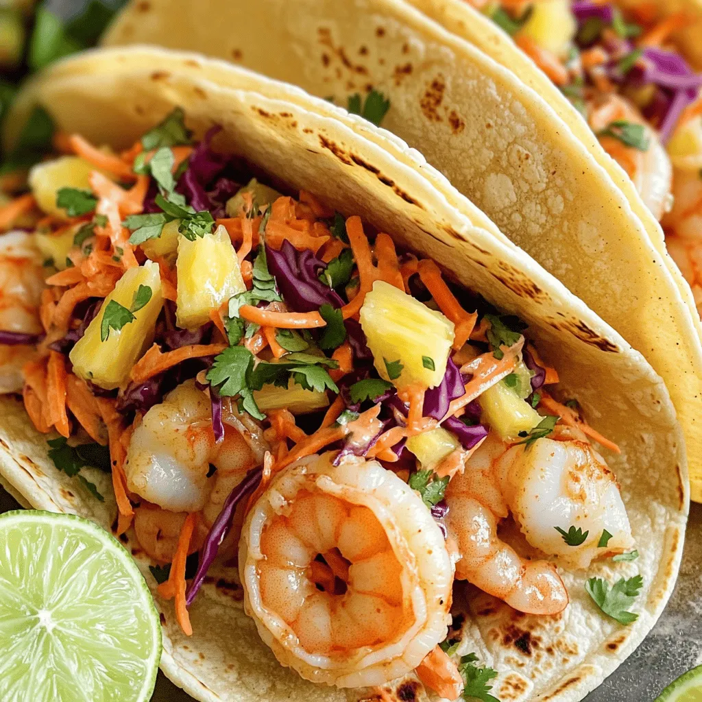 – Place shrimp on each tortilla and top with pineapple slaw.