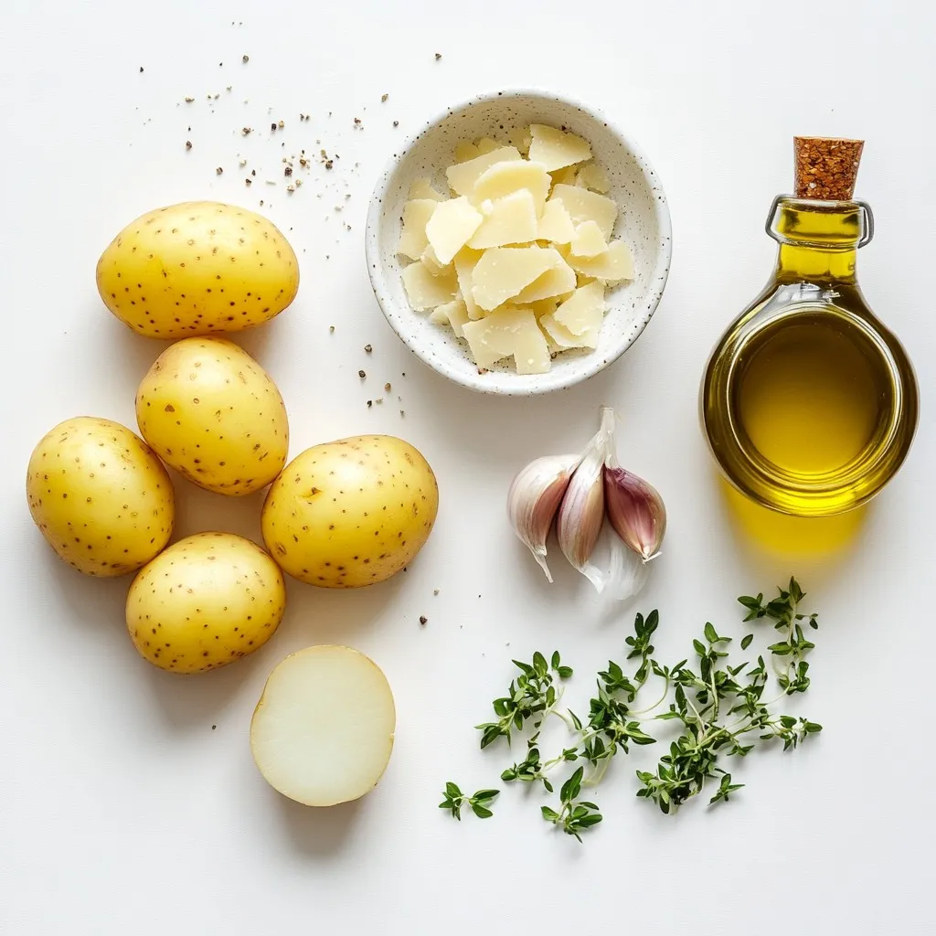 - 4 boneless, skinless chicken breasts - 1 lb baby potatoes, cut in half - 1/2 cup finely grated Parmesan cheese - 4 cloves of garlic, minced - 1/4 cup extra virgin olive oil - 1 teaspoon dried oregano - 1 teaspoon dried thyme - Salt and freshly ground black pepper to taste - Fresh parsley, chopped (for garnishing) Each ingredient plays a key role in the taste. The chicken gives protein, while potatoes add heartiness. Parmesan cheese brings creaminess and flavor. Garlic enhances the dish's aroma. Olive oil keeps everything moist. Oregano and thyme add warmth. Salt and pepper balance the flavors. To make this recipe, gather a few tools. You will need: - A large mixing bowl for mixing the ingredients. - A baking dish to cook the chicken and potatoes. - A spatula for spreading the cheese mixture. - A measuring cup and spoons for precise measurements. - A knife for cutting the potatoes and mincing garlic. - An oven for baking the dish to perfection. With these ingredients and tools, you are ready to create a tasty Garlic Parmesan Chicken and Potatoes meal! {{ingredient_image_2}} First, let's get everything ready. Preheat your oven to 400°F (200°C). This step makes sure your food cooks well. Next, grab a large bowl. In this bowl, add the halved baby potatoes. They should be fresh and firm. Then, add the minced garlic, olive oil, dried oregano, and dried thyme. Don't forget a good pinch of salt and pepper. Mix all these ingredients together until the potatoes are well coated. This is where the flavor begins! Now, let’s arrange the food in the baking dish. Spread the seasoned potatoes on one side of a large baking dish. Make sure they sit in a single layer. This helps them cook evenly. On the other side, place the chicken breasts. Season them with salt and pepper on all sides. This simple step brings out the chicken's natural flavor. In a small bowl, mix the grated Parmesan cheese with a bit of olive oil. Spread this cheesy mixture on top of each chicken breast. This will create a tasty crust as it bakes. It's time to bake! Place the dish in the preheated oven and set a timer for 25-30 minutes. The chicken should reach an internal temperature of 165°F (74°C). The potatoes will turn tender and golden brown. If you like a crispy top, turn on the broiler for 2-3 minutes. Keep an eye on it to prevent burning. Once everything is done, take the dish out and let it rest for a few minutes. This step helps keep the chicken juicy. Finally, sprinkle some fresh parsley on top. It adds a nice pop of color and flavor! To cook chicken well, start with the right size. Use boneless, skinless breasts. They cook faster and more evenly. Season your chicken with salt and pepper. This simple step adds great flavor. Cook the chicken until it reaches 165°F (74°C). You can check this with a meat thermometer. This ensures it is safe and juicy. If you want a crispy top, broil it for a few minutes. Watch it closely to prevent burning. Spices can really boost the taste of your dish. For Garlic Parmesan Chicken & Potatoes, I use dried oregano and thyme. These herbs add depth and freshness. You can also try adding a pinch of red pepper flakes for heat. Garlic is key in this recipe. It gives a strong, savory taste that pairs well with chicken. Don't forget to season the potatoes too. A little salt and pepper can make a big difference. To get that perfect Parmesan crust, blend the cheese with a bit of olive oil. This creates a smooth paste. Spread the mixture evenly over the chicken. Make sure to cover the tops well. This helps the cheese melt and crisp up nicely while baking. If you want extra crunch, broil the chicken for a few minutes at the end. This will give you a golden, delicious crust that is hard to resist. Pro Tips Rest the Chicken: Allowing the chicken to rest for a few minutes after baking helps the juices redistribute, resulting in a juicier and more flavorful dish. Use Fresh Herbs: For an extra burst of flavor, consider using fresh oregano and thyme instead of dried. They provide a more aromatic and vibrant taste. Adjust Cooking Time: Cooking times may vary based on the thickness of the chicken breasts. Use a meat thermometer to ensure they reach the safe internal temperature of 165°F (74°C). Make It a Meal: Add some seasonal vegetables like broccoli or carrots to the baking dish for a complete meal in one pan, enhancing both flavor and nutrition. {{image_4}} You can add vegetables to this dish for more color and nutrition. Try using carrots, bell peppers, or asparagus. Chop them into bite-sized pieces and toss them with the potatoes. This adds flavor and helps the meal feel more balanced. Just make sure the veggies are cut small enough to cook evenly with the chicken and potatoes. If you want to switch proteins, try using fish or pork. Salmon works well, and it cooks quickly. Chicken thighs are also a great option; they stay juicy and tender. Adjust your cooking time depending on the protein you choose. Always ensure the internal temperature is safe for the type of meat you use. Get creative with seasonings to make this dish your own! Instead of oregano and thyme, try rosemary or basil. You could also use a spice blend like Italian seasoning or lemon pepper. A touch of smoked paprika adds a nice kick. Adjust the salt and pepper to enhance the flavors further. Each variation can completely change the dish! After your meal, let the dish cool down. Place the leftovers into an airtight container. This helps keep the chicken and potatoes fresh. You can store them in the fridge for up to three days. To enjoy again, make sure to check for any off smells or changes in texture. To reheat, you can use the oven or the microwave. For the oven, preheat it to 350°F (175°C). Place the chicken and potatoes on a baking sheet. Cover with foil to keep them moist. Heat for about 15-20 minutes. If using a microwave, place the food on a microwave-safe plate. Heat in 30-second bursts until warm. If you want to save some f