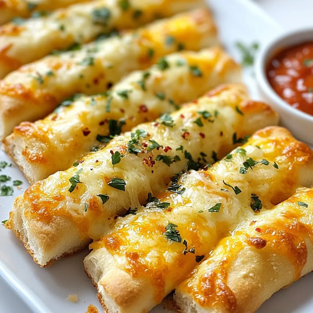 Presentation makes food more inviting. For parties, serve your cheesy breadsticks on a wooden board. This adds a rustic touch. Use a small bowl for dipping sauces in the center. Garnish with fresh parsley for a pop of color. You can also cut the breadsticks into bite-sized pieces. This makes it easy for guests to grab them. Arrange them on a platter with olives and cherry tomatoes for a colorful display.