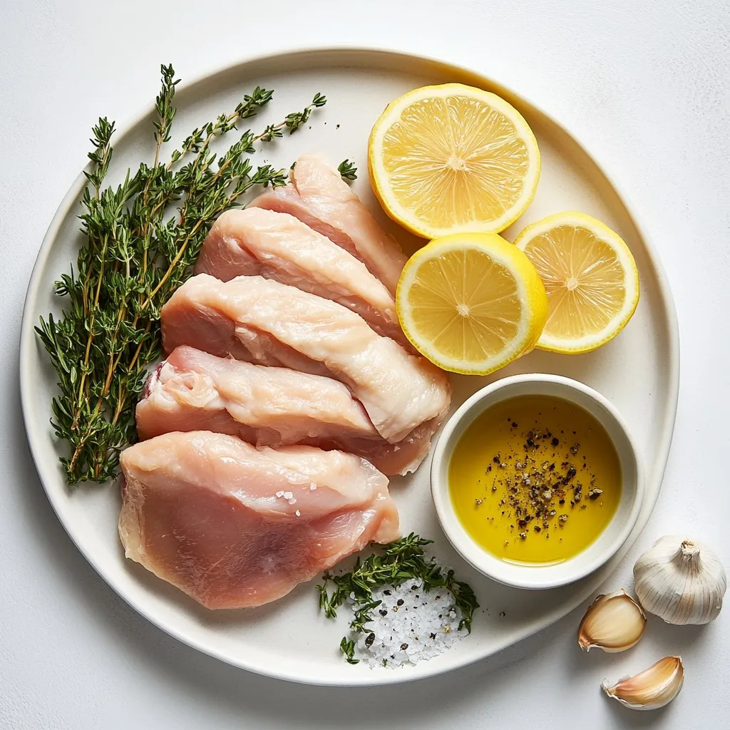 Each ingredient plays a key role in this dish. The chicken breasts provide the main protein. Lemons add brightness and zest. Garlic gives a lovely depth of flavor. Olive oil keeps the chicken moist and adds richness. Thyme and rosemary bring fresh, herbal notes to the meal. Salt enhances all other flavors, while pepper adds a bit of heat. Finally, parsley adds color and freshness to the plate.