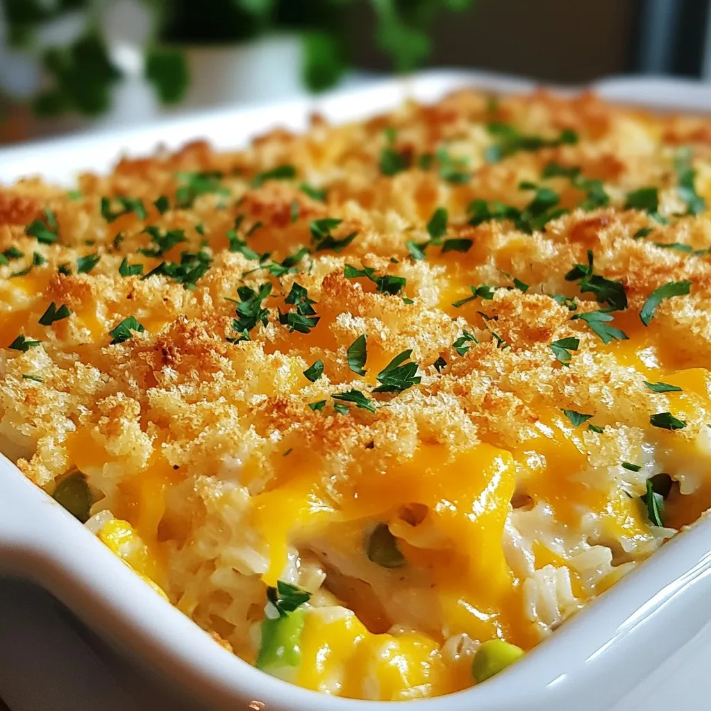 Seasoning is vital for flavor. Garlic powder, onion powder, and thyme bring warmth and depth. Salt and pepper add balance. The panko breadcrumbs create a crispy topping. Mixing them with melted butter ensures they brown nicely in the oven. This crunchy layer makes the casserole even more enjoyable.