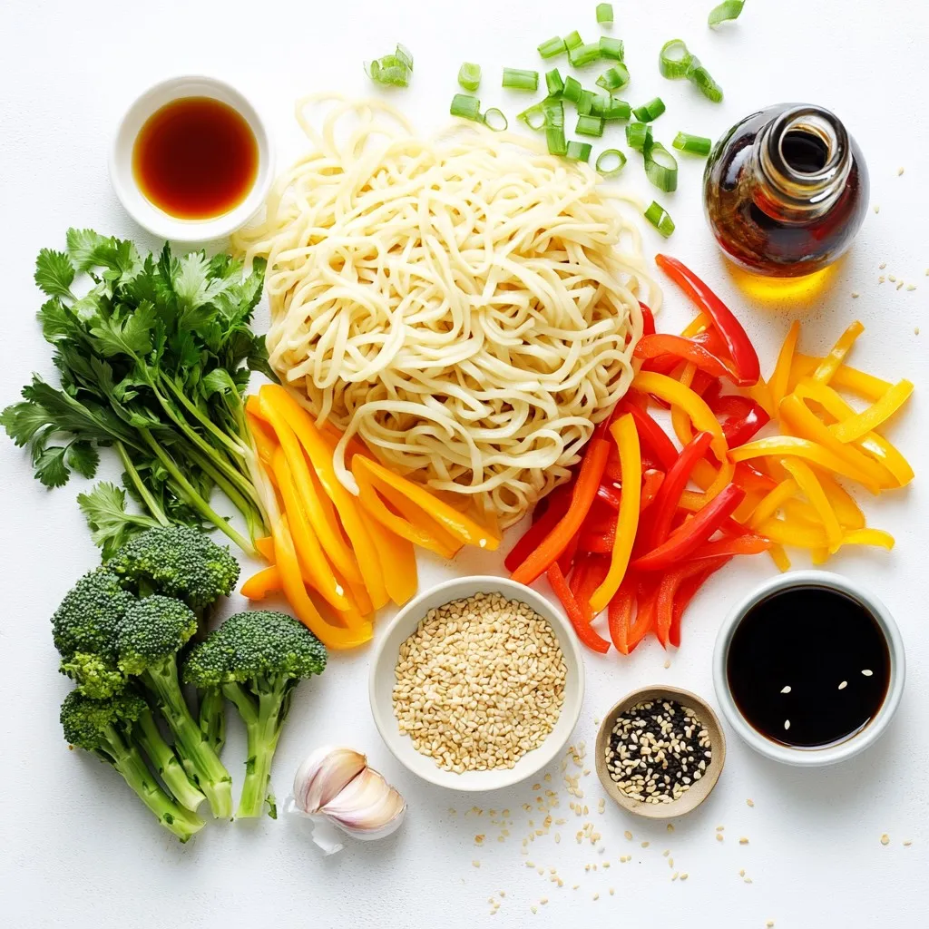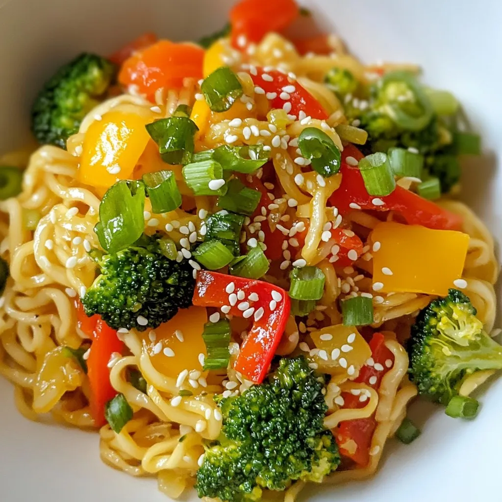 For this quick and tasty dish, you need a mix of fresh ingredients. I prefer to use vibrant bell peppers for color and crunch. The egg noodles or ramen noodles serve as the base.