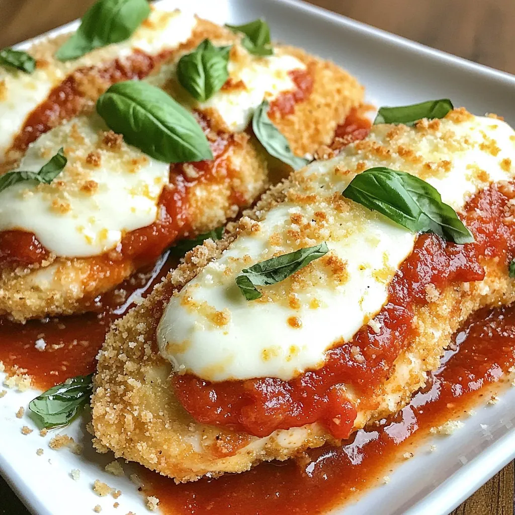 Presentation matters! Serve the chicken on a large platter. Drizzle extra marinara sauce on top for color. Add a sprinkle of freshly grated Parmesan cheese. Finish with fresh basil leaves for a pop of green. This makes the dish look appealing and inviting. The vibrant colors will make your meal feel special and delicious.