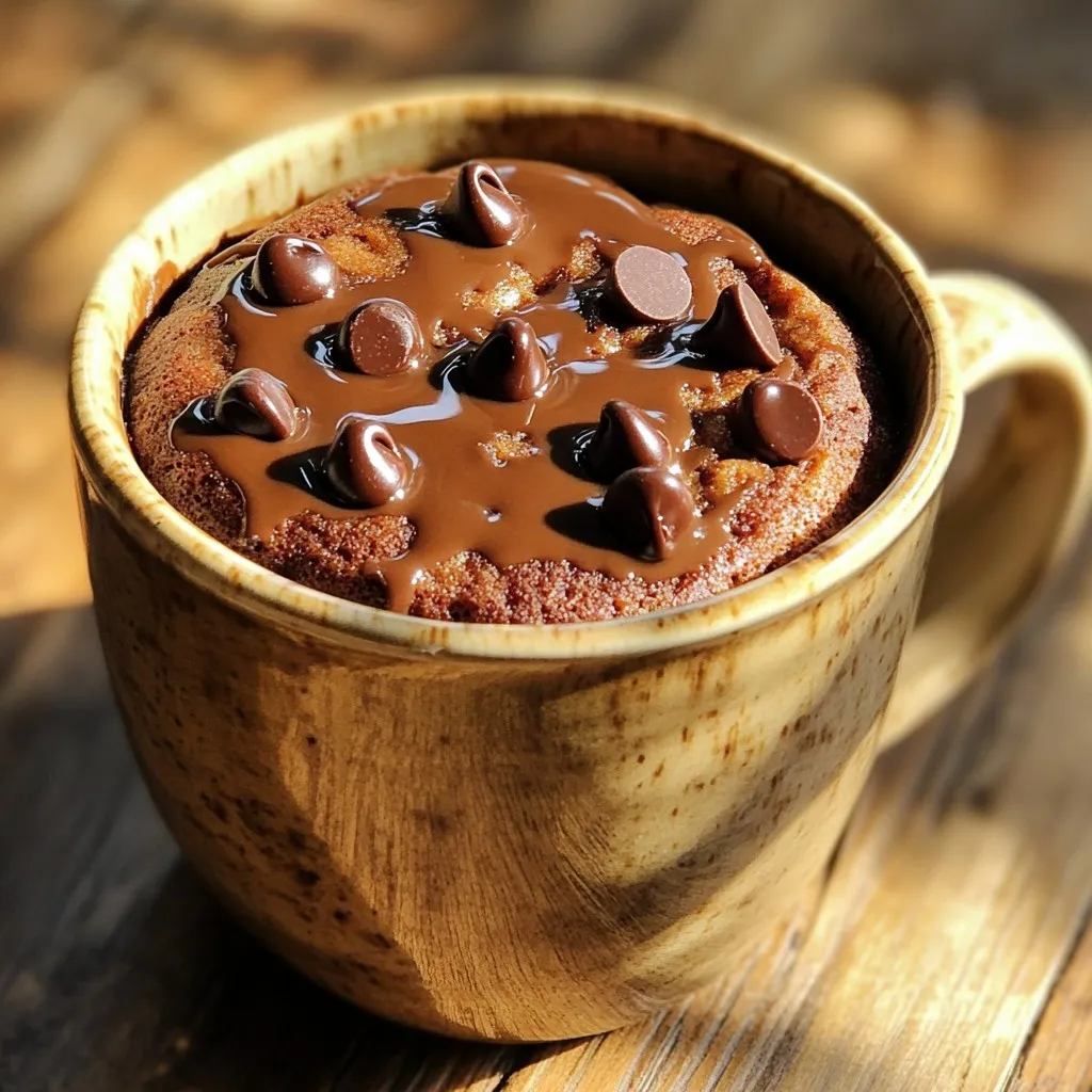 - 1 scoop of chocolate protein powder - 2 tablespoons almond flour - 1 tablespoon cocoa powder - 1/2 teaspoon baking powder - 1 tablespoon coconut oil, melted - 1 tablespoon maple syrup or honey - 1/4 cup milk of choice (almond, soy, dairy) - 2 tablespoons mini chocolate chips - A pinch of salt For this protein chocolate chip mug cake, you need simple ingredients. Each one plays a big part in the flavor and texture. The chocolate protein powder gives the cake its main flavor and boosts your protein. Almond flour adds a nice nutty taste and keeps it moist. Cocoa powder deepens the chocolate flavor while the baking powder makes it rise. Coconut oil not only adds richness but also helps the cake stay soft. Maple syrup or honey acts as a sweetener, so you enjoy every bite. The milk of your choice makes the batter smooth and creamy. Mini chocolate chips are a fun addition. They melt slightly, adding pockets of gooey chocolate. A pinch of salt enhances all the flavors, making this cake simply delightful. Gather these ingredients to create a quick and easy dessert that satisfies your sweet tooth while keeping it healthy! Start by taking a microwave-safe mug. Add one scoop of chocolate protein powder. Then, add two tablespoons of almond flour. Next, add one tablespoon of cocoa powder. Sprinkle in half a teaspoon of baking powder. Finally, add a pinch of salt. Mix these dry ingredients well with a fork. Now, it’s time for the wet stuff. Pour in one tablespoon of melted coconut oil. Next, add one tablespoon of maple syrup or honey. Then, add a quarter cup of your favorite milk. Stir this mixture until it is smooth and well combined. This step is key to getting a great texture. Gently fold in two tablespoons of mini chocolate chips. This makes your cake extra yummy! Place the mug in the microwave. Cook it on high for 60 to 90 seconds. Keep an eye on it. At 60 seconds, check to see if it has risen and is firm. If it looks good, take it out. Let it cool for one minute before you dive in. Enjoy it plain or add Greek yogurt on top for fun! - Avoiding overflow while microwaving To stop overflow, use a large mug. This gives the cake room to rise. Keep an eye on it while it cooks. Start with one minute, then pause to check. - Checking for doneness At one minute, look for the cake to rise and firm up. If the middle is wet, cook it for 10 more seconds. You want it soft, not gooey. - Achieving the ideal texture The perfect mug cake should be moist and fluffy. If it feels too dense, try adding a bit more milk. This will help it rise better. - Greek yogurt options Greek yogurt adds creaminess. Use plain or flavored yogurt for a tasty twist. It pairs well with chocolate. - Extra chocolate chip variations Add more mini chocolate chips for a richer taste. You can also try dark or white chocolate chips for fun. - Nut butter ideas Drizzling nut butter on top adds flavor and healthy fats. Almond or peanut butter works well. Spread it on right before serving for a warm treat. {{image_2}} You can switch up the protein in this mug cake. If you want plant-based options, try pea protein or brown rice protein. These work well and add a unique taste. They keep the cake light and fluffy. If you prefer whey protein, that is also a great choice. It blends smoothly and gives the cake a nice texture. Just remember, each protein powder has its own flavor. So, choose one you enjoy! Want to add some fun flavors? You can easily do this! Try adding a few drops of nut extracts like almond or vanilla. These will give your mug cake a warm, rich taste. You can also mix in some fruit or nuts. A few chopped bananas or berries can add moisture and sweetness. Walnuts or pecans add a nice crunch too. Get creative with what you have on hand! To keep your Protein Chocolate Chip Mug Cake fresh, place it in an airtight container. You can refrigerate it for up to three days. If you want to store it longer, freeze it for up to a month. Just make sure it cools completely before freezing. To reheat, pop the mug cake in the microwave for about 30 seconds. Check it to see if it’s warm enough. If not, heat it for another 10 seconds. This keeps it moist and tasty. Use a glass or ceramic container for storing. These materials hold heat well and prevent sogginess. Avoid plastic containers, as they can trap moisture. Expect your leftover mug cake to last about three days in the fridge. In the freezer, it will stay good for about a month. Just remember to wrap it tightly to prevent freezer burn. A mug cake takes about 60 to 90 seconds to cook in the microwave. Start with 60 seconds and check if it’s done. The cake should rise and feel firm to touch. If it needs more time, cook it for another 10-15 seconds. Yes, you can use different protein powders. Whey, soy, or plant-based powders all work well. Just note that different powders may change the cake's flavor and texture. Adjust the liquid if needed to keep the batter smooth. If you need a substitute for almond flour, use oat flour or coconut flour. Each has a different taste and texture. If using coconut flour, use less, as it absorbs more liquid. - Can I make this recipe vegan? Yes, you can make this mug cake vegan. Use plant-based protein powder, swap honey for maple syrup, and choose almond or soy milk. - How do I customize my mug cake without adding calories? To customize without extra calories, use unsweetened cocoa powder or less sweetener. You can add spices like cinnamon or vanilla extract for flavor. Experiment with small amounts of fruit, too! This blog post covers a simple and tasty chocolate mug cake recipe. We explored ingredients, easy steps, and helpful tips to make the perfect cake. I shared ways to store leftovers and answered common questions. A mug cake can be a quick treat that fits your diet. Try different flavors or proteins to make it your own. Enjoy this easy recipe as a delicious snack!