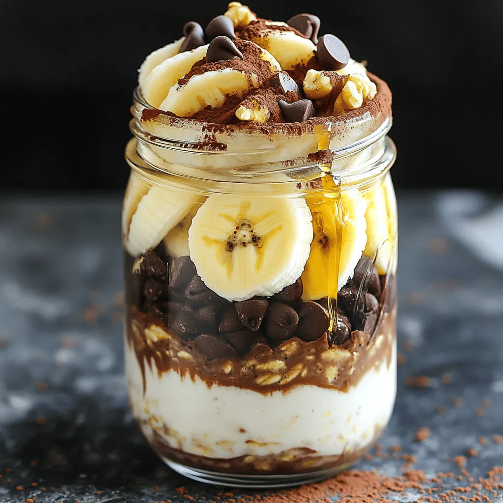 - 1 cup rolled oats - 2 cups almond milk (or any milk of choice) - 1 tablespoon cocoa powder - 1 tablespoon instant coffee or espresso powder - 2 tablespoons maple syrup or honey - 1 scoop chocolate protein powder - 1/4 cup Greek yogurt - 1/4 cup dark chocolate chips - A pinch of sea salt These ingredients come together to create a rich and satisfying breakfast. Rolled oats provide a hearty base. Almond milk, or any milk you prefer, adds a smooth texture. Cocoa powder and espresso powder give that mocha flavor, making each bite feel like a treat. The sweetness comes from maple syrup or honey. Chocolate protein powder boosts the nutrition, while Greek yogurt adds creaminess. Dark chocolate chips bring a delightful surprise. Finally, a pinch of sea salt enhances all these flavors. Feel free to play with these ingredients. You can swap almond milk for oat milk or use different sweeteners. The choice is yours! 1. In a large mixing bowl, combine: - 1 cup rolled oats - 1 tablespoon cocoa powder - 1 tablespoon instant coffee or espresso powder - A pinch of sea salt This mix gives your oats a rich chocolate and coffee flavor. 2. In a separate bowl, whisk together: - 2 cups almond milk (or any milk of choice) - 2 tablespoons maple syrup or honey - 1 scoop chocolate protein powder This mixture adds creaminess and sweetness. 3. Pour the wet mixture into the dry ingredients. Mix until everything is well combined. You want a smooth, thick batter that blends well. 4. Stir in: - 1/4 cup Greek yogurt - 1/4 cup dark chocolate chips This step creates a delicious brownie texture. 1. Divide the oat mixture into individual jars or containers. Use mason jars for a fun presentation. 2. Seal the lids tightly to prevent leaks. Proper sealing keeps your oats fresh. 3. Refrigerate overnight (or at least 4 hours). This allows the oats to absorb the liquid and soften. 1. In the morning, give the oats a good stir. If needed, add a splash more milk for the right consistency. 2. Top with optional toppings like: - Sliced bananas - Chopped walnuts - More chocolate chips These toppings enhance flavor and presentation. Enjoy! You can easily adjust the sweetness. If you want it sweeter, add more maple syrup or honey. For a less sweet version, cut back on the sweetener. You can also try using vanilla extract for a new flavor twist. To boost protein, add an extra scoop of chocolate protein powder. You can also mix in some nut butter or seeds. Both options pack in more protein while keeping it tasty. Overnight oats are perfect for meal prep. To make the best overnight oats, mix the ingredients well and store them in jars. This helps the oats soften and soak up the flavors. They store well in the fridge for up to five days. Just remember to seal the jars tightly. This keeps them fresh and ready for a quick breakfast. Serve the oats in mason jars for a fun touch. Layering the oats with toppings makes it look pretty. You can sprinkle extra cocoa powder or chocolate chips on top for visual appeal. Consider adding sliced bananas or chopped walnuts, too. These toppings not only look good but also add great flavor and texture. {{image_2}} You can change the flavor of your overnight oats. Try using different protein powder flavors. For example, vanilla or peanut butter protein makes a fun twist. You can also switch sweeteners. Instead of maple syrup, use agave or coconut sugar for a new taste. You can make this recipe work for you by swapping some ingredients. Use non-dairy milk if you need a dairy-free option. Almond, coconut, or oat milk works great. If you want gluten-free oats, look for certified gluten-free rolled oats. They taste just as good! Toppings can make your oats even better. Fresh seasonal fruits work well, like strawberries, blueberries, or peaches. You can also try nuts and seeds. Chopped almonds, sunflower seeds, or chia seeds add crunch and flavor. Get creative and mix up your toppings each time! Store your Protein Mocha Brownie Overnight Oats in the fridge at a temperature below 40°F (4°C). This keeps them fresh and safe to eat. You can enjoy them for up to five days after making them. Just make sure to keep the lids on tightly. If you want to freeze your oats, divide them into jars or containers. Leave some space at the top for expansion. Seal them tightly and place them in the freezer. For best results, thaw them in the fridge overnight before enjoying. This keeps the texture smooth and creamy. To enjoy leftovers, you can microwave them. Heat them for 30 seconds, then stir. If they are too thick, add a splash of milk. You can also eat them cold right out of the fridge. Top with sliced bananas, walnuts, or more chocolate chips for an extra treat! Overnight oats are a great choice for breakfast. They pack a lot of nutrition. You get fiber from oats, which helps with digestion. The protein from Greek yogurt and protein powder keeps you full. They also save time. You can make them the night before. Just grab a jar in the morning. It’s ready to eat, no cooking needed! Yes, you can make this recipe your own! Try adding different fruits like berries or apples. You can also switch the sweetener for agave or stevia. If you have dietary needs, you can adapt the recipe. Use gluten-free oats for a gluten-free meal. Swap almond milk for coconut milk if you like a different flavor. For creamy oats, use rolled oats, not instant oats. Rolled oats soak up the liquid well and create a nice texture. Adding Greek yogurt helps make the oats creamy too. If you want them thicker, use less milk. If they are too thick, add more milk in the morning. You now have a complete guide to making delicious overnight oats. We covered key ingredients, step-by-step preparation, storage tips, and variations. Personalizing your oats can elevate your breakfast experience. Remember, these oats are not just tasty but also healthy. Enjoy experimenting with flavors and textures to make them work for you. With all the tips provided, you can create a sat