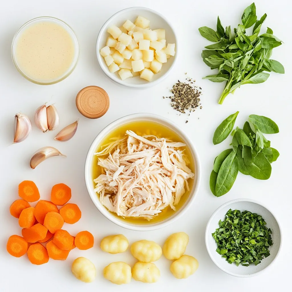 A comforting and creamy soup featuring shredded rotisserie chicken, tender gnocchi, and fresh vegetables.