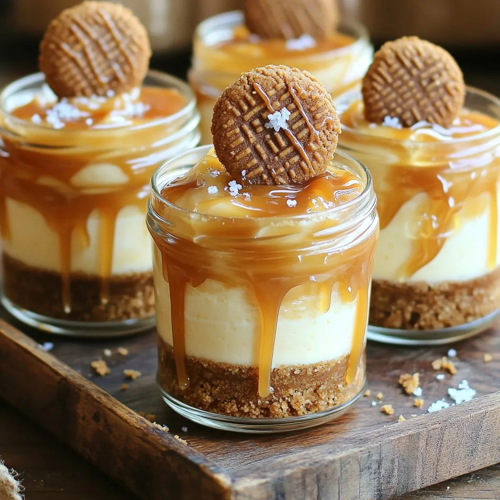 Make your cheesecake cups look stunning! Use clear cups or jars to show off the layers. Drizzle extra salted caramel sauce on top right before serving. Sprinkle crushed Biscoff cookies for crunch and style. You can even add a fresh berry for color. Arrange the cups on a decorative tray. This makes your dessert look even more inviting. Serve chilled for the best taste!