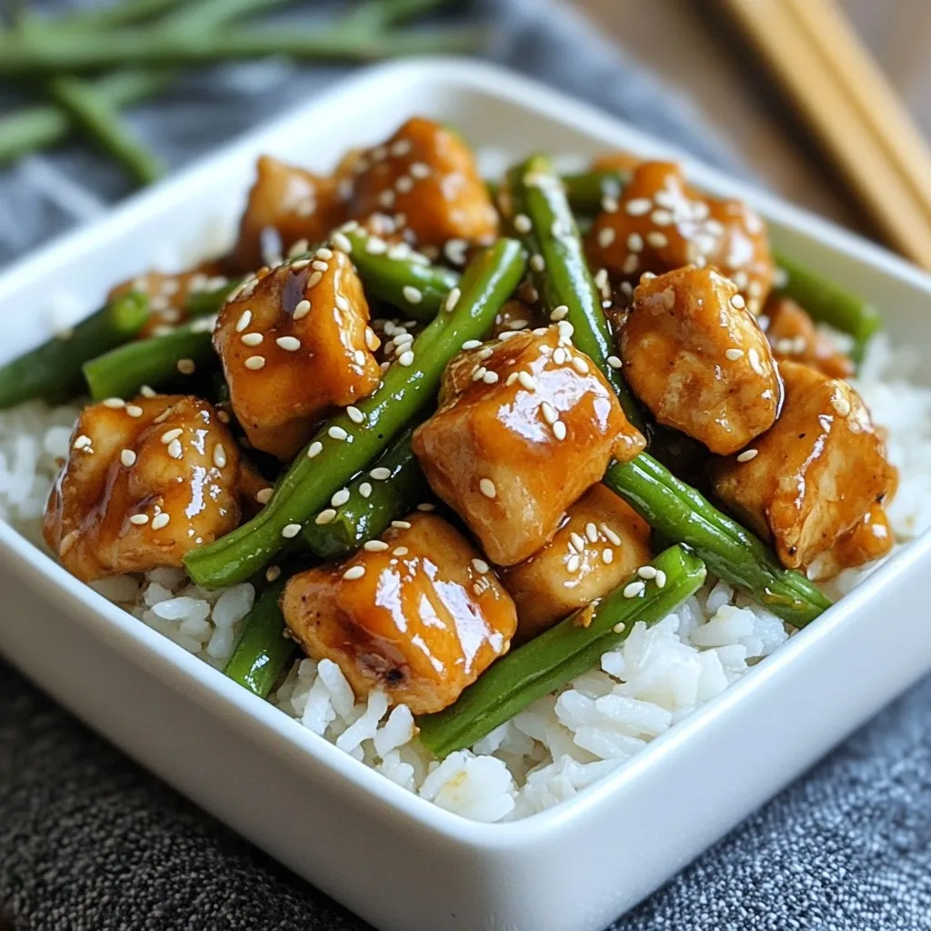 - 1 lb chicken breast, cut into bite-sized pieces - 2 cups green beans, trimmed and cleaned - 3 tablespoons sesame oil, divided - 3 tablespoons low-sodium soy sauce, divided - 2 tablespoons honey - 1 tablespoon rice vinegar - 1 tablespoon cornstarch - 2 tablespoons water - 2 cloves garlic, minced - 1 inch fresh ginger, grated - 2 tablespoons toasted sesame seeds (for enhanced flavor) - Salt and pepper, to taste - Cooked rice, for serving (optional) The marinade gives the chicken a great taste. Use 1 tablespoon of soy sauce. Add a pinch of salt and pepper. Mix it well with the chicken. Let it sit for at least 15 minutes. This will make the chicken juicy and flavorful. To make this dish even better, serve it over warm rice. Rice helps soak up the tasty sauce. You can also add fresh cilantro or sliced green onions on top. This adds color and a fresh taste. Enjoy your meal with friends or family for a fun time! {{ingredient_image_2}} Start by cutting the chicken breast into bite-sized pieces. In a bowl, add the chicken. Pour in 1 tablespoon of soy sauce. Season with a pinch of salt and pepper. Mix well to coat each piece. Let the chicken marinate for at least 15 minutes. This helps boost the flavor. In another small bowl, combine the remaining 2 tablespoons of soy sauce, honey, rice vinegar, cornstarch, and water. Whisk these ingredients together until smooth. This sauce will give your dish a tasty glaze. Heat 1 tablespoon of sesame oil in a large skillet over medium-high heat. Add the marinated chicken pieces once the oil is hot. Cook the chicken for about 6 to 8 minutes until golden brown. Stir occasionally for even cooking. Once done, remove the chicken and keep it warm on a plate. In the same skillet, add the other 2 tablespoons of sesame oil. When it heats up, add minced garlic and grated ginger. Sauté for about 30 seconds until you smell the aroma. Next, toss in the trimmed green beans. Stir-fry for 5 to 6 minutes until they turn bright green and tender but still crisp. Now, add the cooked chicken back to the skillet with the green beans. Pour the prepared sauce over everything. Stir well to coat all the ingredients evenly. Cook for an additional 2 to 3 minutes until the sauce thickens slightly. Make sure everything is heated through before serving. Transfer the sesame chicken and green beans onto serving plates. For a complete meal, serve it over warm cooked rice. You can also garnish with extra toasted sesame seeds or sliced green onions for added flavor and color. Enjoy your delicious creation! - Always marinate the chicken for at least 15 minutes. This makes it juicy and flavorful. - Use fresh garlic and ginger for the best taste. They add depth to the dish. - Stir-fry the green beans quickly over high heat. This keeps them crisp and bright. - Don’t skip the marinating step. It enhances the chicken's flavor. - Avoid overcrowding the skillet. Cook in batches if needed for even cooking. - Don’t overcook the green beans. They should be tender but still have a crunch. - Serve the dish in a large, bright bowl for a feast for the eyes. - Garnish with extra toasted sesame seeds or sliced green onions. This adds color and flavor. - Pair the dish with white or brown rice for a complete meal. It balances the flavors well. Pro Tips Marinate for Maximum Flavor: Allow the chicken to marinate for at least 30 minutes if possible. This enhances the flavor and tenderness of the chicken significantly. Use Fresh Ingredients: Fresh garlic and ginger will provide a more vibrant flavor compared to powdered versions. Always opt for fresh where possible. Adjust Sauce Thickness: If you prefer a thicker sauce, let it simmer for a few extra minutes after adding it to the chicken and green beans. Serve with Color: Garnish with sliced green onions or fresh cilantro for extra color and freshness. This not only enhances the look but adds a burst of flavor. {{image_4}} You can change the chicken for other meats. Try shrimp or tofu for a twist. Beef or pork also work well. Each protein brings a unique taste. Just adjust cooking times to suit the meat. Use shrimp for quick cooking. Tofu takes in all the flavors you add. Green beans are great, but you can mix in other veggies. Bell peppers add color and crunch. Broccoli gives a nice texture. Snap peas or carrots are tasty choices too. Just cut them to the same size. This way, they cook evenly. You can use any veggie you love. The sauce is key to this dish. You can tweak it to your taste. Add chili paste for heat or peanut butter for creaminess. Try lime juice for a zesty kick. Mix in fresh herbs like cilantro for brightness. These small changes can make a big difference. Be creative and have fun with flavors! To keep your sesame chicken and green beans fresh, store leftovers in an airtight container. Place the container in the fridge. It will stay good for up to three days. Make sure it cools down before sealing. This helps maintain flavor and texture. You can freeze this dish for longer storage. First, let it cool completely. Then, place it in a freezer-safe container or a heavy-duty freezer bag. Remove as much air as possible before sealing. This dish will last up to three months in the freezer. Label the container with the date for easy tracking. When ready to eat, thaw the dish in the fridge overnight. To reheat, use a microwave or a skillet. If using a microwave, cover it loosely. Heat for about two to three minutes, stirring halfway. If using a skillet, add a splash of water to keep it moist. Warm it on medium heat until heated through. This keeps the chicken juicy and the green beans crisp. You can make this recipe healthier by using less oil and sodium. Here are some tips: - Use skinless chicken breast. This reduces fat content. - Choose low-sodium soy sauce. This helps cut back on sodium. - Add more veggies. Try bell peppers or broccoli for extra nutrients. - Serve with brown rice or quinoa. These options offer more fiber than white rice. Yes, you can 