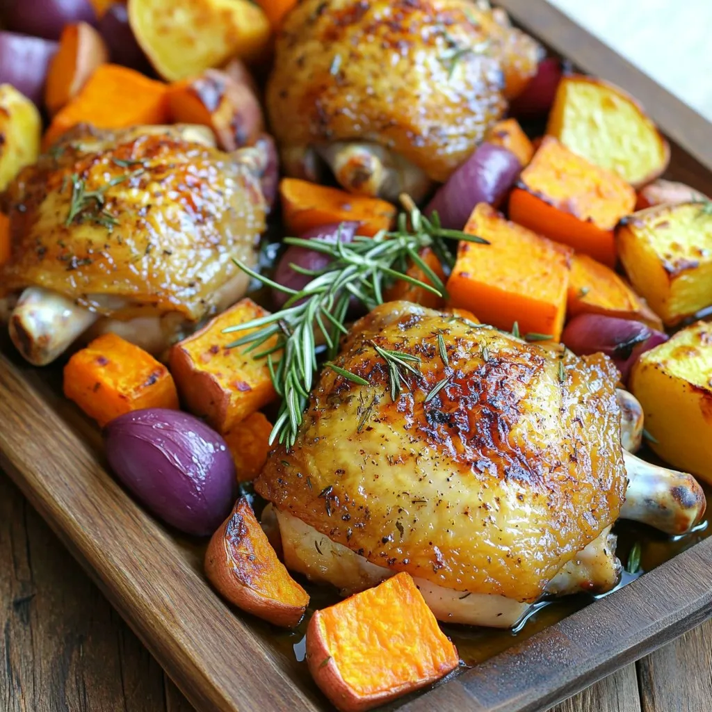These ingredients bring out the best flavors in your dish. Bone-in chicken thighs stay juicy as they roast. Root veggies like carrots, parsnips, and sweet potatoes add natural sweetness and texture. Red onion and garlic boost the savory notes, making each bite delightful.