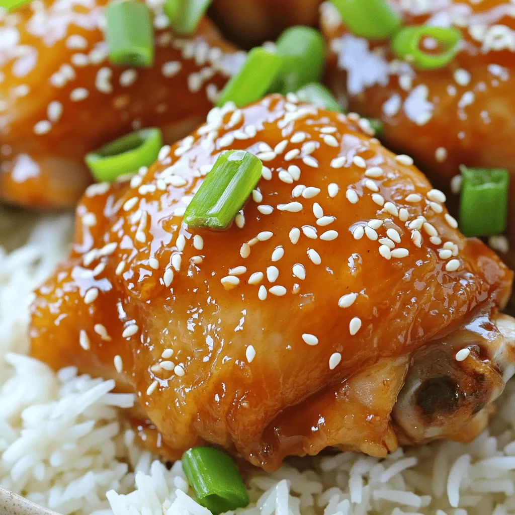 This recipe has simple and tasty ingredients. Here’s what you need: - 6 chicken thighs (bone-in, skin-on for extra flavor) - 1/2 cup honey - 1/4 cup soy sauce (low sodium) - 4 cloves garlic, minced - 1 tablespoon fresh ginger, grated - 2 tablespoons rice vinegar - 1 tablespoon sesame oil - 1 teaspoon ground black pepper - 1 teaspoon salt These ingredients create a sweet and savory flavor. The chicken thighs stay juicy and tender in the slow cooker. If you want a thicker sauce, consider adding: - 1 tablespoon cornstarch Cornstarch helps the sauce cling to the chicken. It adds a nice texture to every bite. Garnishing makes your dish look more appealing. Use these for a pop of color: - 2 green onions, sliced - Sesame seeds Sprinkle these on top just before serving. It adds freshness and a nice crunch. Enjoy the beautiful look of your meal! To start, gather your ingredients. In a mixing bowl, combine the honey, soy sauce, minced garlic, grated ginger, rice vinegar, sesame oil, black pepper, and salt. Whisk them together well. You want the flavors to blend nicely. This marinade gives the chicken a sweet and savory taste. Let it sit for a few minutes. Next, take the chicken thighs and place them in your slow cooker. Pour the marinade over the chicken. Make sure each piece is coated evenly. This step is key to getting that rich flavor. You want the chicken to soak up all the tasty sauce. Now it’s time to cook. Cover the slow cooker with its lid. You can choose to cook on low for 6-7 hours or on high for 3-4 hours. The chicken should be tender and fully cooked when done. If you want a thicker sauce, remove the chicken after cooking. Pour the sauce into a saucepan, bring it to a gentle boil, and add cornstarch mixed with cold water. Stir until it thickens. This step is optional but really enhances the dish! To make your honey garlic chicken even better, consider these tips. Use bone-in, skin-on chicken thighs. This adds more flavor and keeps the meat juicy. Marinate the chicken overnight for deeper flavor. If you want a kick, add red pepper flakes to the marinade. For a bit of crunch, brown the chicken in a pan before placing it in the slow cooker. This step adds a nice texture. You can swap some ingredients if needed. If you don’t have soy sauce, try coconut aminos. It gives a sweet and savory taste. For honey, maple syrup works well too. You can use garlic powder if you’re out of fresh garlic. Just use 1 teaspoon for each clove. Want to skip the sesame oil? Use olive oil instead; it will still taste great. Avoid these mistakes for the best results. Don’t rush the cooking time; low and slow works best. If you cook on high, check the chicken at 3 hours. Overcooking can make the chicken dry. Make sure to coat the chicken evenly with the marinade. This ensures all pieces get full flavor. Lastly, don’t skip the garnishes. Green onions and sesame seeds make your dish look and taste better. {{image_2}} You can switch chicken thighs for chicken breasts. Breasts cook faster, so check them after 2-3 hours. Pork chops also work well. They stay juicy with the marinade. For a vegetarian option, use firm tofu. Press the tofu to remove extra water. Then, cut it into cubes and marinate. Want a kick? Add red pepper flakes to the marinade. Start with a teaspoon. Taste it after cooking to see if you want more heat. You can also add sriracha for a bolder flavor. Mix it in with the honey and soy sauce. Adjust the sweetness with a bit more honey if needed. Add color and nutrition by including vegetables. Broccoli, bell peppers, or snap peas are great choices. Toss them in the slow cooker with the chicken. Adjust cooking time for softer veggies. Check them after 4 hours on high or 6 hours on low. Enjoy a one-pot meal packed with flavor! Once your honey garlic chicken thighs cool, place them in an airtight container. Store them in the fridge for up to four days. If you want to keep the chicken fresh, avoid leaving it out at room temperature for more than two hours. This helps prevent bacteria growth and keeps your meal safe. To freeze the chicken, let it cool completely. Place the chicken and any sauce in a freezer-safe bag. Remove as much air as you can before sealing. The chicken can last in the freezer for up to three months. When you’re ready to eat, thaw it in the fridge overnight. To reheat, you can use the microwave or oven. If using the microwave, heat the chicken in short bursts to avoid drying it out. If using the oven, cover the chicken with foil and heat at 350°F (175°C) for about 20 minutes. You want it hot all the way through. For extra flavor, drizzle some sauce over the chicken before reheating. Yes, you can use boneless chicken thighs. They will cook faster than bone-in thighs. Just reduce the cooking time by about an hour. Boneless thighs stay juicy and tender, perfect for this dish. Check the thickest part of the chicken. It should reach 165°F (74°C) for safety. Use a meat thermometer for the best results. The chicken should look white and no longer pink inside. Serve the chicken over jasmine rice or with steamed broccoli. These sides soak up the tasty sauce well. You can also add a fresh salad for a crisp touch. Consider serving with rice noodles for a fun twist. Yes, you can make this dish in advance. Cook it fully and store it in the fridge for up to three days. Reheat it gently on the stove or in the microwave. You can also freeze it for up to three months. Just thaw and reheat when you're ready to enjoy. You can create a delicious slow cooker honey garlic chicken dish with ease. This recipe covers everything from the main ingredients and optional thickening options to garnishes for a great look. Follow the step-by-step instructions to marinade, cook, and avoid common mistakes. Explore variations and storage tips for your meals. With these insights, you can enjoy this dish fresh or later. Now, get ready to impress with your cooking skills and enjoy every bite!