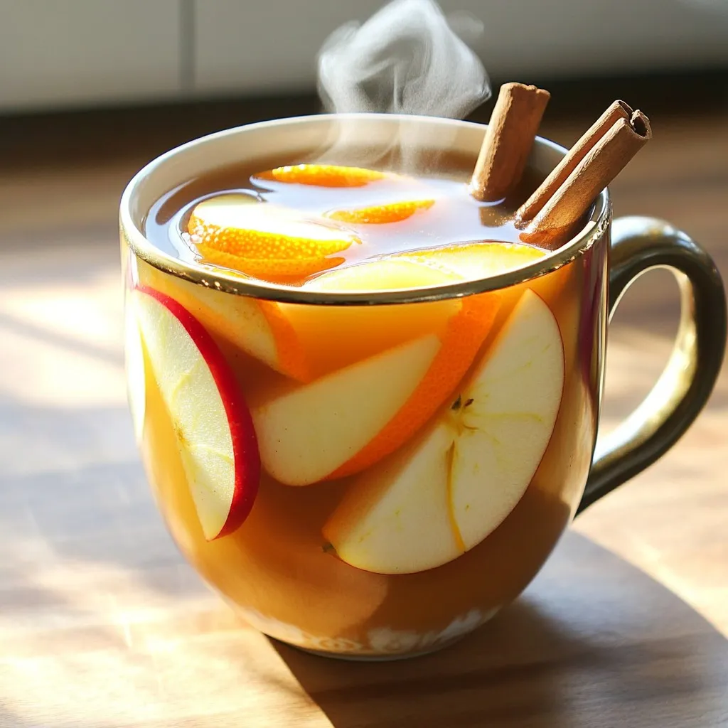 - 8 cups apple cider - 1 orange, sliced - 3-4 cinnamon sticks - 1 tablespoon whole cloves - 1 tablespoon whole allspice berries - 1/4 cup brown sugar (or to taste) - 1 teaspoon vanilla extract - Optional garnish: apple slices and additional cinnamon sticks You can swap apple cider for fresh apple juice if needed. This change may alter the flavor slightly. If you do not have allspice berries, try using nutmeg. You can also use ground spices, but use less. Ground spices can be strong. For a sweeter taste, use maple syrup instead of brown sugar. Always pick fresh cider for the best flavor. Look for cider that is cloudy, not clear. Cloudy cider has more pulp, which gives a richer taste. If you can, get cider from local farms. This cider typically has a fresher taste. Also, check the label. Avoid ciders with added sugars or artificial flavors. To make this cozy drink, start by gathering your ingredients. You will need: - 8 cups apple cider - 1 orange, sliced - 3-4 cinnamon sticks - 1 tablespoon whole cloves - 1 tablespoon whole allspice berries - 1/4 cup brown sugar (or to taste) - 1 teaspoon vanilla extract - Optional garnish: apple slices and additional cinnamon sticks First, pour the apple cider into your slow cooker. Next, add the sliced orange. The orange adds a nice citrusy touch to the cider. Toss in the cinnamon sticks, whole cloves, and allspice berries. These spices will give the cider its warm, spiced flavor. Finally, stir in the brown sugar and vanilla extract until it all mixes well. Adjust the sugar to your taste. Once you have mixed everything, cover the slow cooker and set it to low heat. Let it cook for 4 to 6 hours. The longer it cooks, the more the flavors meld together. You will start to smell the warm spices filling your kitchen. This is when the magic happens! After your cider has cooked, it’s time to strain it. Use a fine-mesh sieve to remove the spices and orange slices from the cider. This step ensures a smooth drink. Now, pour the warm spiced cider into mugs. You can garnish with apple slices and an extra cinnamon stick if you like. This adds a lovely touch and makes it even more inviting. Enjoy your cozy drink! To boost the flavor of your spiced apple cider, use quality spices. Fresh spices give a fuller taste. I recommend using whole spices like cinnamon sticks, cloves, and allspice berries. You can also add a pinch of nutmeg for warmth. If you want a brighter note, try adding a few slices of ginger. It pairs well with the apple cider's sweetness. When serving, use nice mugs to create a cozy vibe. Warm the mugs before pouring in the cider. This keeps your drink hot longer. For garnish, add fresh apple slices on top and a cinnamon stick. This not only looks nice but adds extra flavor too. Consider serving some snacks, like popcorn or cookies, to go with your drink. A common mistake is not straining the cider well. Leaving spices in can make it too strong. Be sure to use a fine-mesh sieve when you pour the cider into mugs. Another mistake is using too much sugar. Always start with the brown sugar and taste before adding more. Remember, you can always add sugar later, but you can’t take it out once it’s in! {{image_2}} You can change this cider for each season. In fall, add fresh cranberries for a tart twist. In winter, try adding a few slices of fresh ginger for warmth. During spring, mix in some fresh mint leaves for a refreshing taste. Each change gives the cider a new life. You can also use fresh herbs like rosemary or thyme for something unique. This cider is great for everyone. For a non-alcoholic drink, just follow the recipe as is. Serve it warm to keep everyone cozy. If you want a spiked version, add spiced rum or bourbon. This adds a nice kick and makes the drink feel festive. Just be careful with the amount so it stays tasty. You can switch up the sweetness in this cider. If you want less sugar, use honey or maple syrup. Both will add a nice flavor. If you prefer a sugar-free option, try stevia or agave syrup. For a different flavor, add a splash of apple juice or pear juice. These small changes can make a big difference in taste. To store leftover cider, let it cool down first. Pour it into a clean container. A glass jar or plastic bottle works well. Seal it tightly with a lid. You can keep it in the fridge for up to a week. Make sure to label the date. When you’re ready to enjoy your cider again, pour it into a pot. Heat it on low on the stove. Stir it gently as it warms up. You can also reheat it in the microwave. Just use a microwave-safe mug and heat it for one minute, checking often. When stored properly, your spiced apple cider lasts about a week in the fridge. If you want to keep it longer, freeze it! Pour the cider into ice cube trays or freezer bags. It can last up to six months in the freezer. To enjoy later, let it thaw in the fridge overnight. Yes, you can use other fruits! Pears or cranberries add a nice twist. Their flavors blend well with the spices. You can add slices of these fruits along with the orange. Feel free to mix and match based on what you enjoy. To make a larger batch, increase the apple cider. Use 2 cups of cider for every extra serving. For each cup, add one more slice of orange, one cinnamon stick, and a few more whole spices. Just keep the ratios the same. This way, you keep the flavor balanced. Yes, you can make this cider on the stovetop! Just follow the same steps. Combine all the ingredients in a large pot. Heat it over medium heat. Bring it to a simmer and let it cook for 30-45 minutes. Strain and serve hot! In this blog post, we explored how to create delicious apple cider at home. We looked at the right ingredients, preparation steps, and cooking tips. You learned about how to enhance flavors and avoid common mistakes. I also shared variations to fit your taste and storage suggestions to keep your cider fresh. Making apple cider is fun and rewarding. With these tips, you can craft your perfect drink. Enjoy you