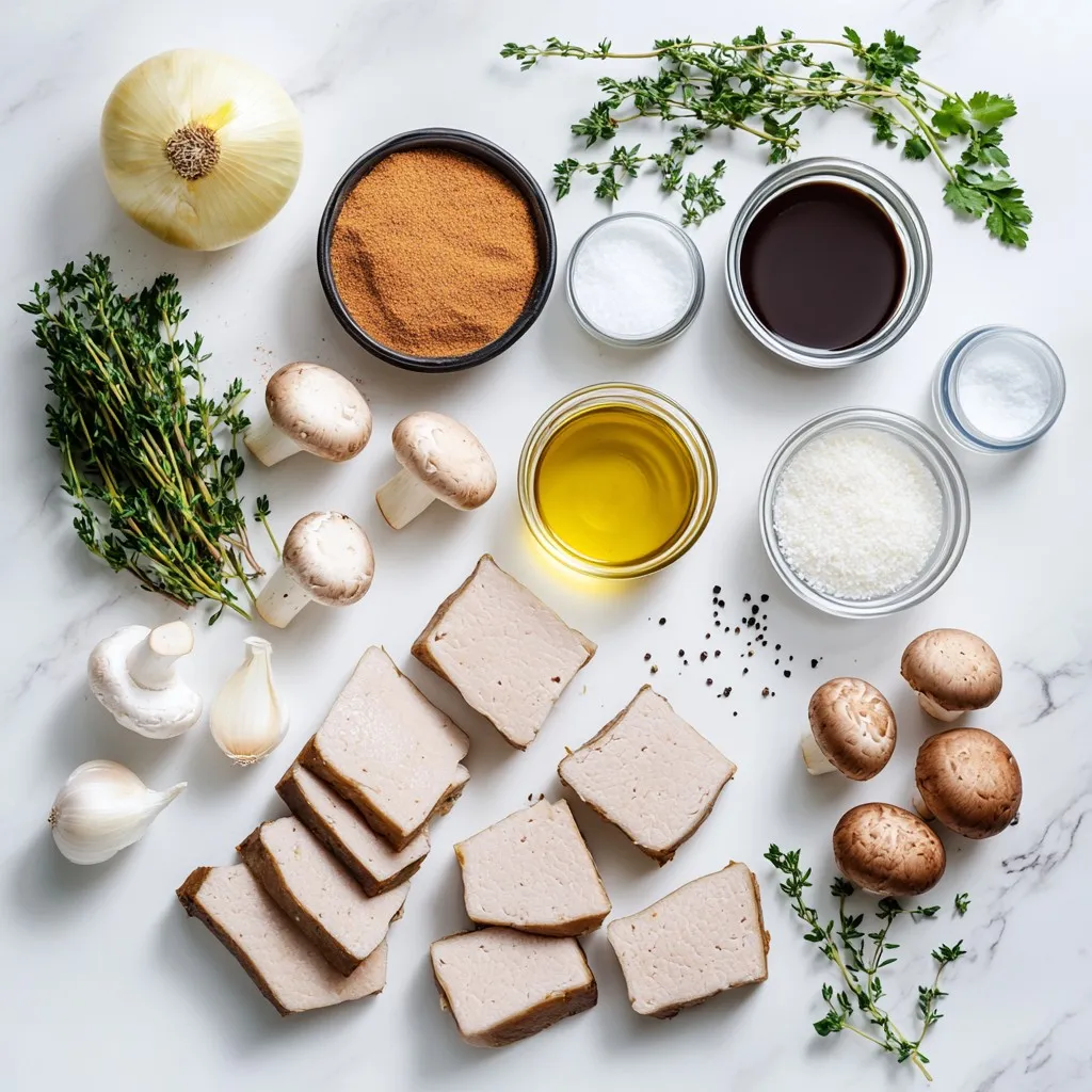 Seitan gives this dish a hearty texture. I love using it for a meat-like feel. Mushrooms add a rich, earthy flavor. They soak up all the tasty bits. Onions bring sweetness when sautéed. Garlic adds a nice kick to the mix.